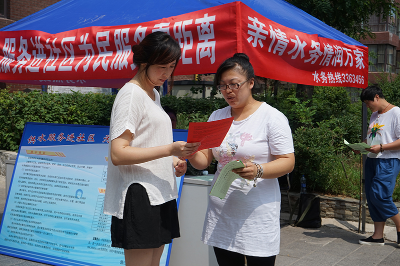 營口水務(wù)集團(tuán)有限公司在開展 “兩學(xué)一做”學(xué)習(xí)教育中,全面落實(shí)市委“在職黨員進(jìn)社區(qū)”志愿服務(wù)活動要求,結(jié)合企業(yè)對外服務(wù)實(shí)際,組織黨員干部職工走進(jìn)社區(qū)和小區(qū),深入群眾,開展“供水服務(wù)進(jìn)社區(qū)、為民服務(wù)零距離”活動,了解和掌握群眾用水需求,解答群眾在用水方面問題,通過采取有針對性切合實(shí)際的措施,解決供水服務(wù)問題,為民排憂解難。
